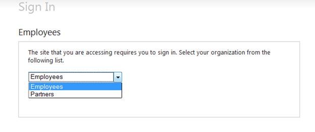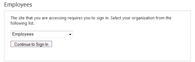 Again, I go thru Home Realm Discovery (HRD) and select Employees