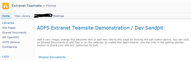 I select the “Teamsites” application and off we go and we’re in Sharepoint