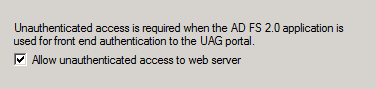 On the AD FS web application itself, we must allow unauthenticated access to the AD FS web server / farm