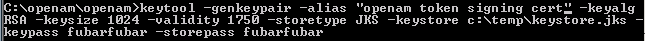 Let’s return to OpenAM …… for federation purposes, we will need to configure a signing key  to be used by OpenAM . This key is then used to sign metadata. This can be quite a confusing process, so as ever, test test… OpenAM comes with a default test (signing) key that is common to all installations and, as a result, use of this test key should not be considered secure. We’ll create a new test signing certificate and import this into the Java keystore that OpenAM uses.