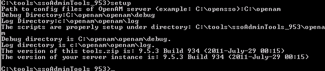In the example below, SETUP is being run from the tools folder, and when queried for I’ve provided the configuration path information for the OpenAM server, Debug and Log directories.