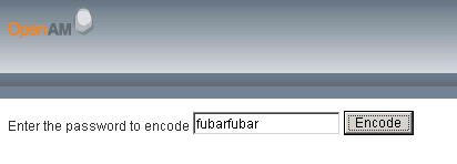 There’s an encoding servlet at https://idp.mydomain.com/openam/encode.jsp  as well as command-line tools. This encoding servlet allows for a quick and simple way to encode a password for the .keypass and .storepass files. For example, let’s use the example password of fubarfubar