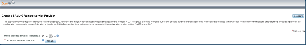 In this example, we’ll use OpenAM as a SAML 2 Identity Provider (IdP) and AD FS 2.0 as a SAML 2.0 Service Provider (SP). From the metadata screen previously, let’s fill in the necessary details: