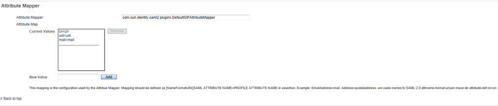 There are a couple of changes that we need to make on the OpenAM IDP side. The IDP attribute mapper is used to specify which user attributes will be included in an assertion. The default attribute mapper (com.sun.identity.saml2.plugins.DefaultIDPAttributeMapper) retrieves attribute mappings from the (user) data store and sets that value as the attribute value of the specified SAMLV2 attribute.