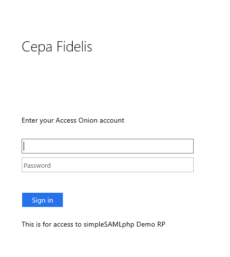 Set-AdfsRelyingPartyWebContent -TargetRelyingPartyName “simpleSAMLphp Demo” -CompanyName “Cepa Fidelis ” -OrganizationalNameDescriptionText “Enter your Access Onion account” -SignInPageDescription “This is for access to simpleSAMLphp Demo RP”