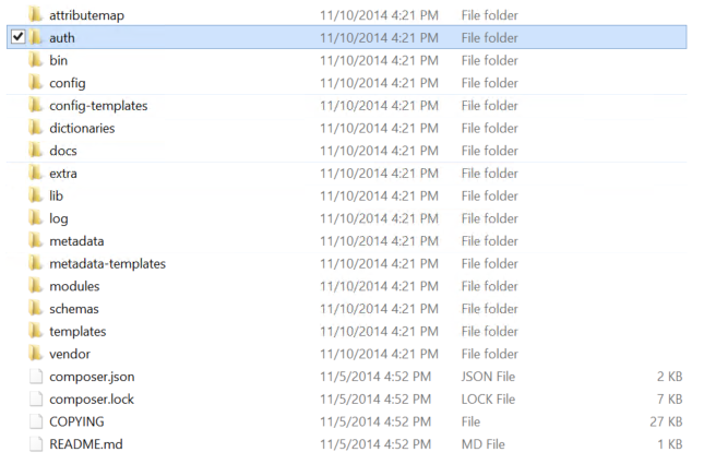 In each case the simpleSAMLphp files are unzipped to a folder per function, e.g: