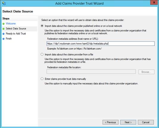 This doesn’t solve the problem for access from the outside. Moreover, we expressly wish to send all connecting users to our 2FA claims provider, rather than to the in-build AD claims provider…. We could use auxiliary authentication provided by the MFA Adapter in AD FS 2012 R2, thereby eliminating the use of the upstream claims provider. However, that might not be feasible as: