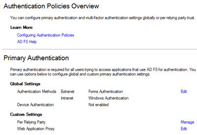 To make use of MFA, an MFA provider is required. In a vanilla AD FS R2 setup, this is limited to certificate authentication using client certificates (see previous post). For other MFA options, check with your favorite 2FA vendor to see if they’ve written an MFA adapter for AD FS R2.