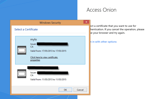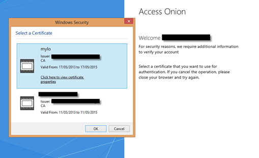 In the above graphic, we have an option to login with a virtual smart card (top) and an X509 client certificate (bottom). Click on the certificate and AD FS will authenticate the user using secondary authentication (MFA).