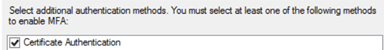 In AD FS Global Authentication Policy for MFA, we enable certificate authentication: