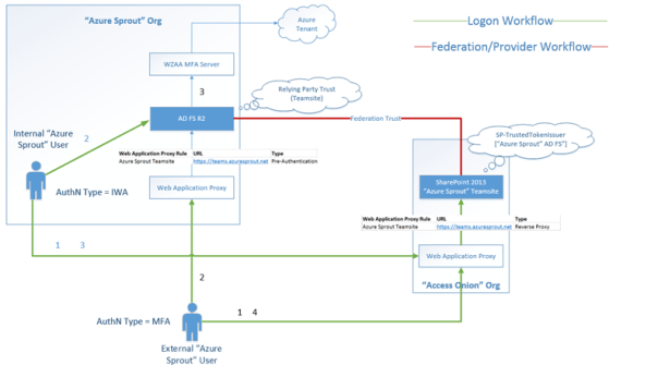 • Front-end authentication protocols may differ from back-end authentication protocols. For ISA/TMG/IAG/UAG admins, this is a familiar concept, but it can now be applied to federation protocols at the front-end.