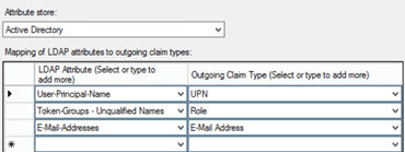 The AD User and Group SIDs, together with UPN also need to be defined for each of the Exchange Relying Party applications in the form of custom claims rules: Windows Account Name (sAMAccountName)