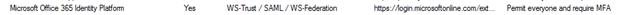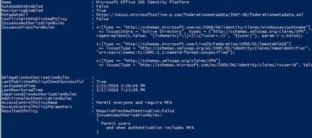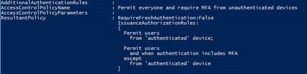 Set-AdfsRelyingPartyTrust -AccessControlPolicyName ‘Permit everyone and require MFA’ -targetidentifier https://login.microsoftonline.com/extSTS.srf